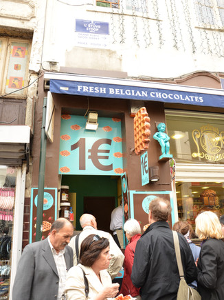 接著往街道走去,可看見沿途有許多巧克力及鬆餅店。